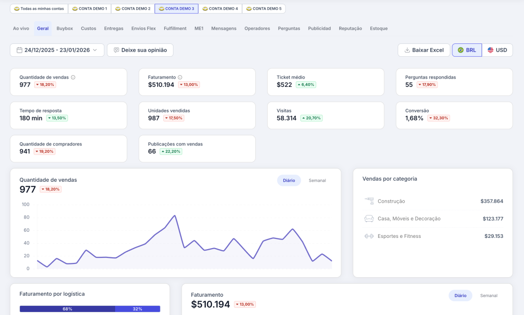 Na Administrado acreditamos que sem dados claros, você vende às cegas. E em um marketplace tão dinâmico como o Mercado Livre, entender o que está acontecendo (e por quê) é o que separa os vendedores que reagem dos que se antecipam.